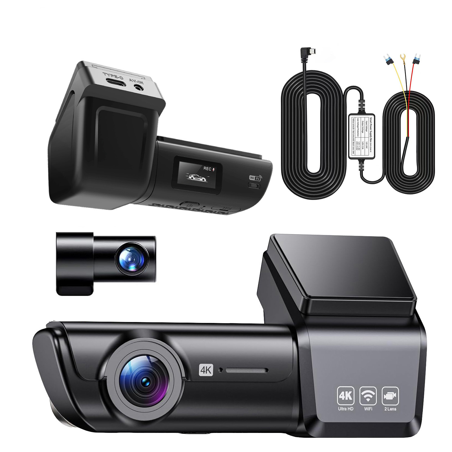 - 4K UHD + 2K دو دوربین جلو و عقب: وضوح بینظیر، حفاظت همهجانبه. دوربین جلو ۴K واقعی و عقب 2K با زاویه ۱۷۰° جلو و ۱۶۰° عقب ضدآب، با پوشش کامل بدون نقطه کور.